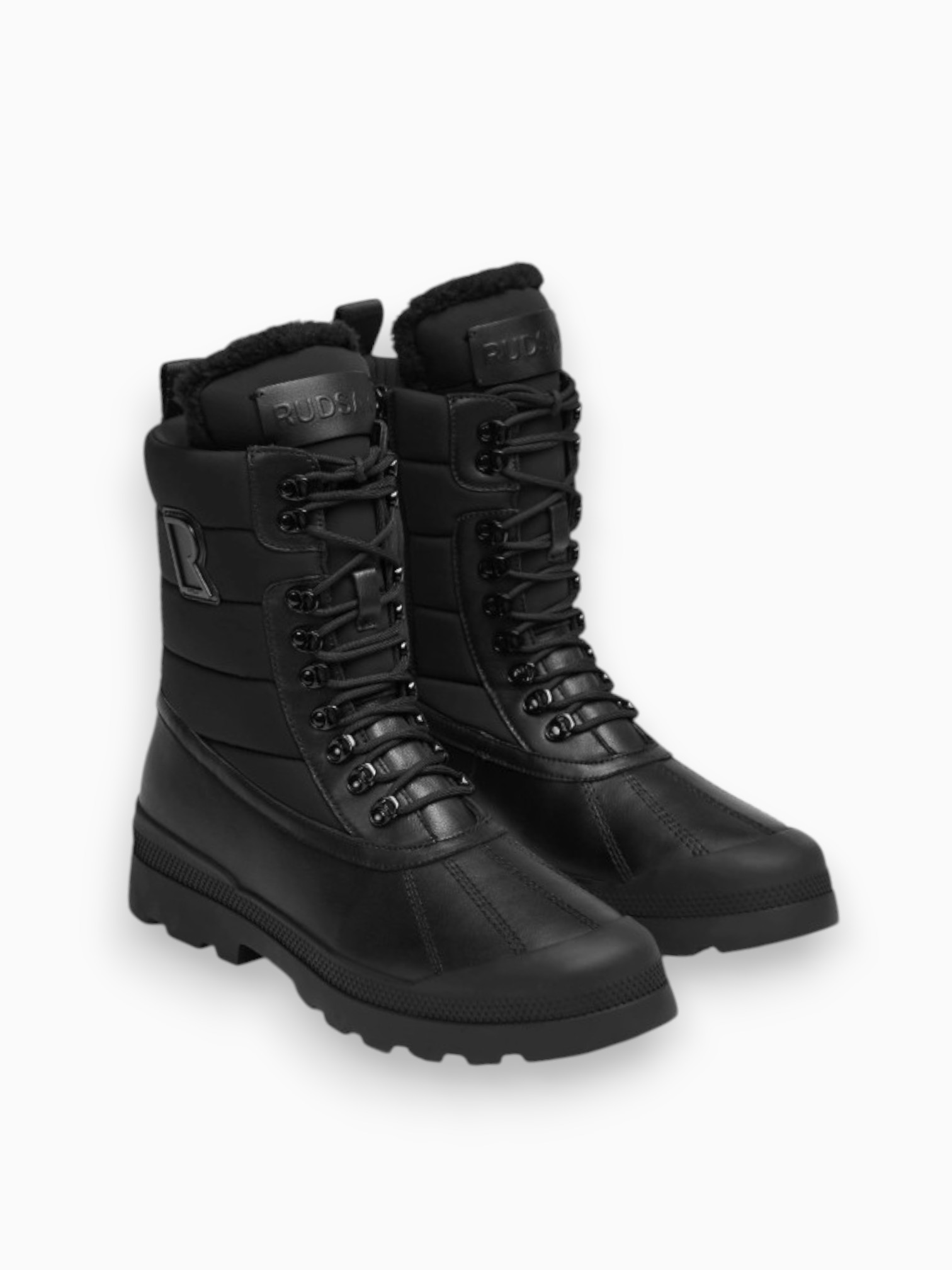 Affrontez l'hiver avec style grâce à la REAGAN par RUDSAK, une paire de bottes d'hiver pour hommes conçue avec une combinaison de cuir et de tissu résistant à l'eau. Cette fusion de mode et de fonctionnalité vous assure d'être prêt à affronter le froid. Dotées de fermetures éclair intérieures imperméables et d'un laçage robuste, enfiler et retirer ces bottes est un jeu d'enfant. Le logo emblématique de RUDSAK sur les côtés extérieurs ajoute une touche élégante. Doublées d'un mélange de laine douce, ces bottes promettent chaleur et confort, les rendant indispensables pour les hivers urbains ou les aventures en plein air.